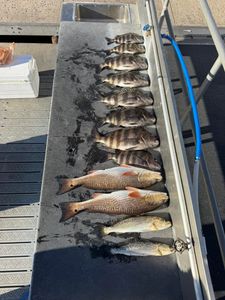 Mixed sheepshead, redfish, and speckled trout catch