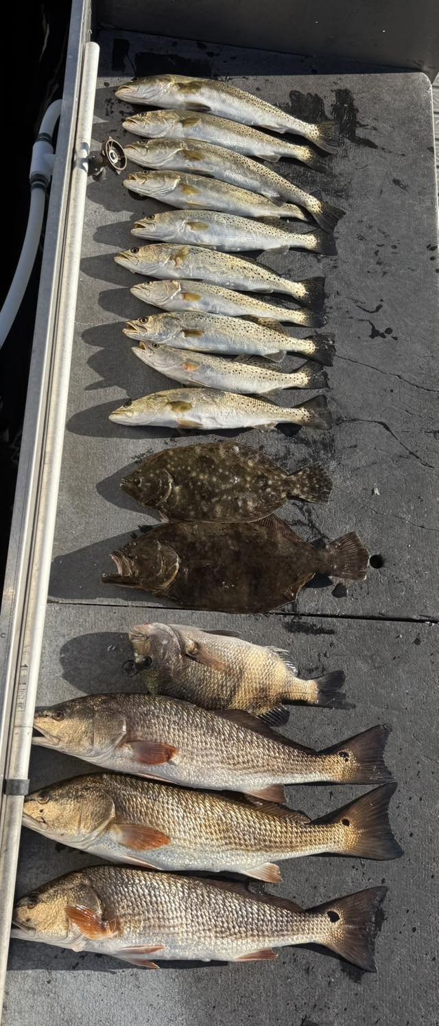 Loaded redfish, speckled trout, and flounder catch